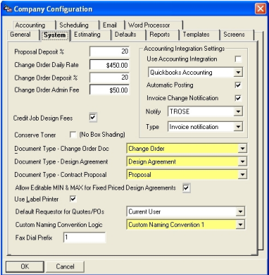 Document Type-Design Agreement - Click on the drop down box and choose the Design Agreement document that your company will use for change orders. You should have set this up in the Setting Up Templates section. Document TypeContract Proposal Click on the drop down box and choose the Contract Proposal document that your company will use for change orders. You should have set this up in the Setting Up Templates section.