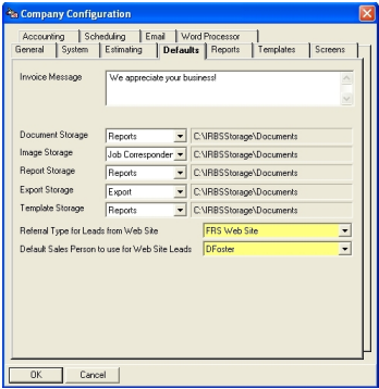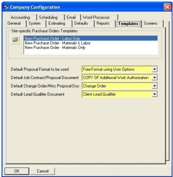 Default Job Contract/Proposal Document - Click on the drop down to choose a default Job Contract/Proposal document. This tells RBS which document to pull. These were set up in Setting up Templates section.