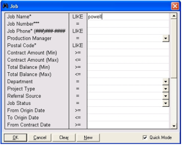 A search form will be displayed for job selection.
