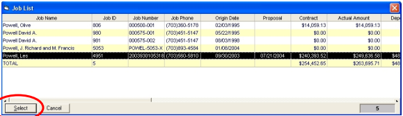 Highlight the job that you want added to the In-Box and click the SELECT button.