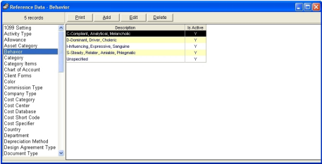 Select the item on the left panel (e.g. Behavior, Activity Type, Allowance, etc) to list the available records in the right panel.