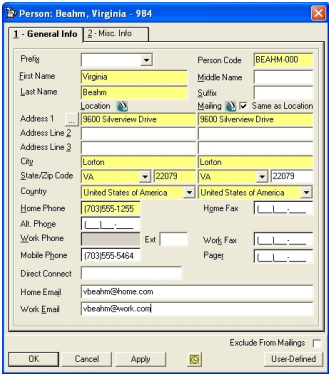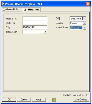 Click on the Misc Info tab to enter additional data.
