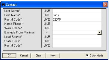 A Contact Search form will be displayed.