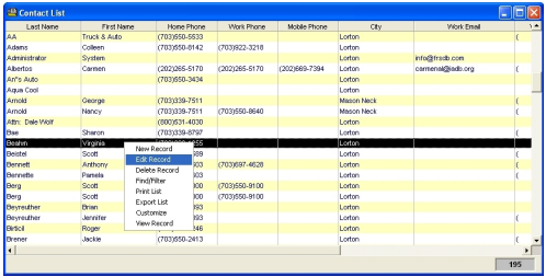 Edit Record - Edit an existing selected contact record
