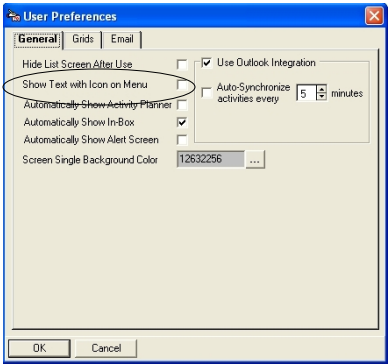 Show Text with Icon on Menu: Click here if you would like the text to appear on your icons on the toolbar in RBS.